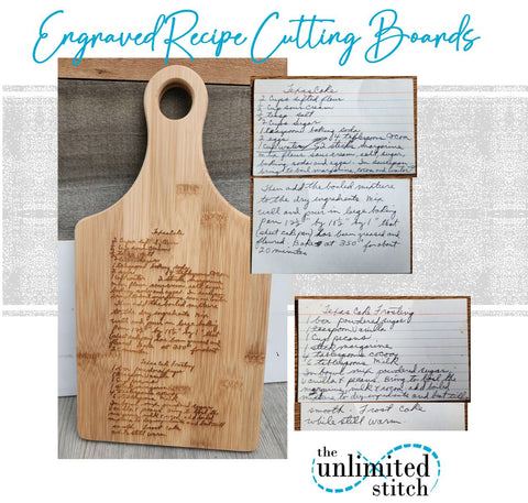 Looking for a handwritten recipe cutting board in a specialty wood? Additional wood options will be available in separate listings soon.