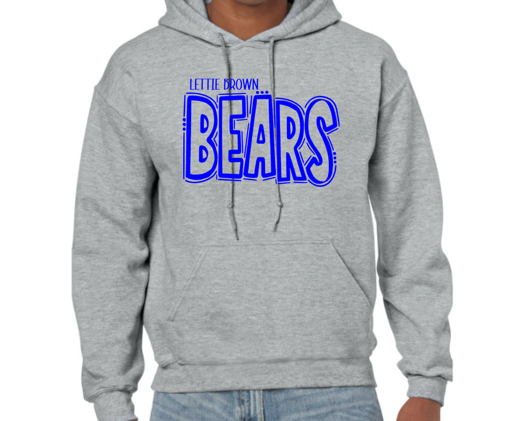 Lettie Brown BEARS Excited design on either a hoodie or crew sweatshirt