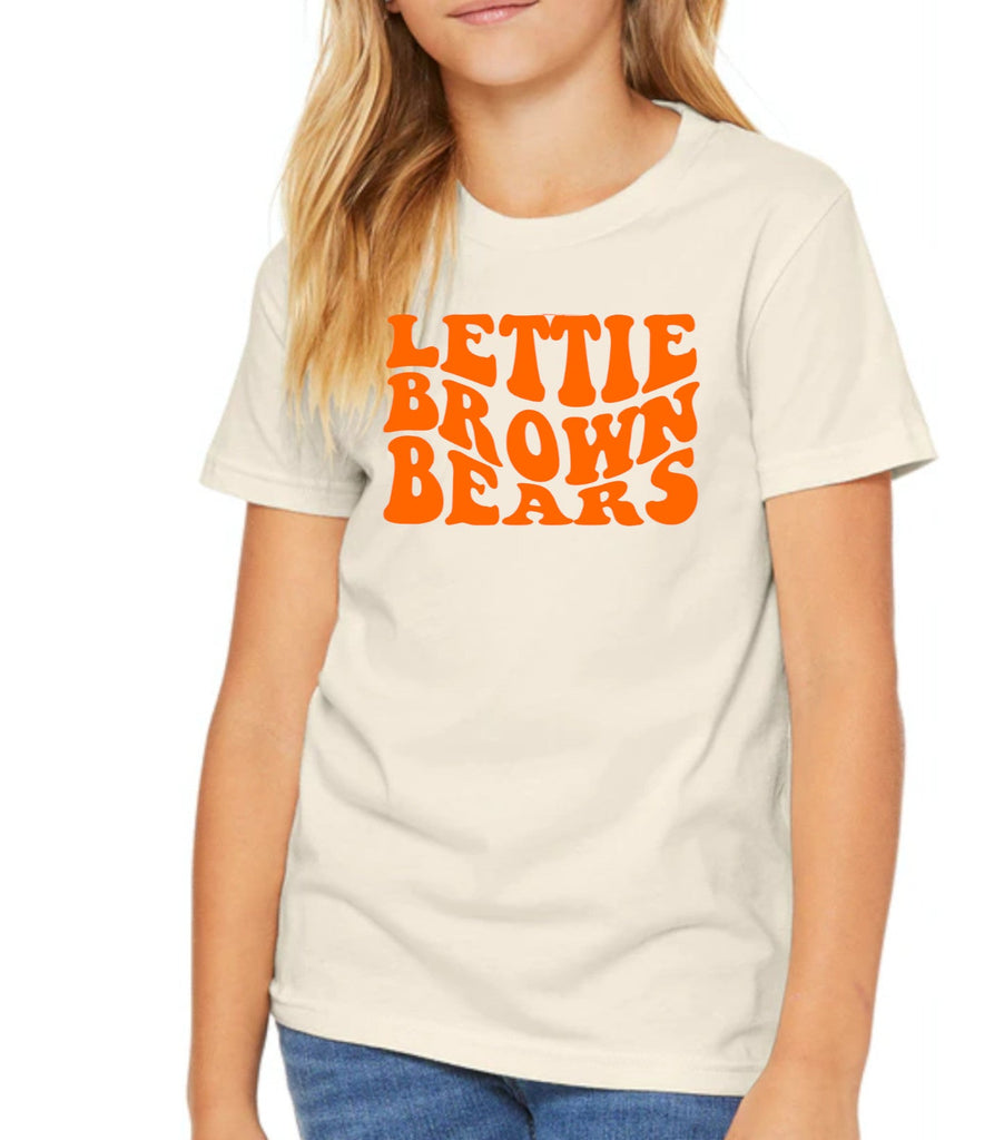 Lettie Brown Bears love the groovy wave of this design on a classic natural tee.