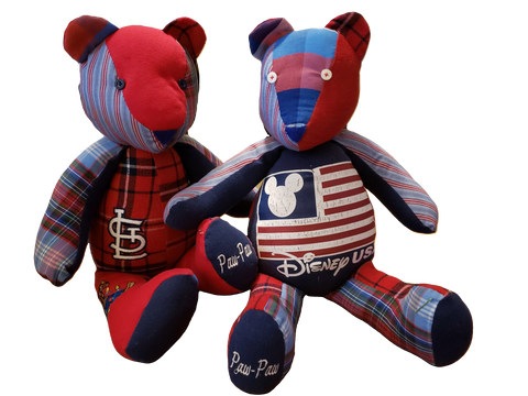 Repurposing a loved one’s clothing into a huggable memory bear can provide comfort during the grieving process and is often chosen as a sympathy or bereavement gift. Each bear is carefully handcrafted with respect and attention to detail in our smoke-free and pet-free workspace.