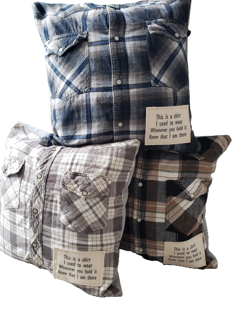 Repurposing a loved one’s clothing into a pillow can help with healing and provide a tangible connection that brings comfort when coping with loss. It is a lasting, sentimental keepsake that can be cherished for generations.