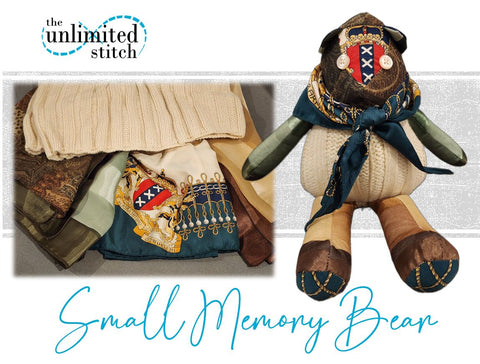 Preserve the memory of a loved one with our Small Memory Bear, handcrafted from cherished clothing like t-shirts, dress shirts, pajamas, onesies, blankets, and more. At approximately 12" tall, this bear is ideal for memorial gifts, sympathy keepsakes, or heirloom-quality mementos. Each bear is unique, huggable, and designed to comfort family and friends while honoring a loved one’s memory.